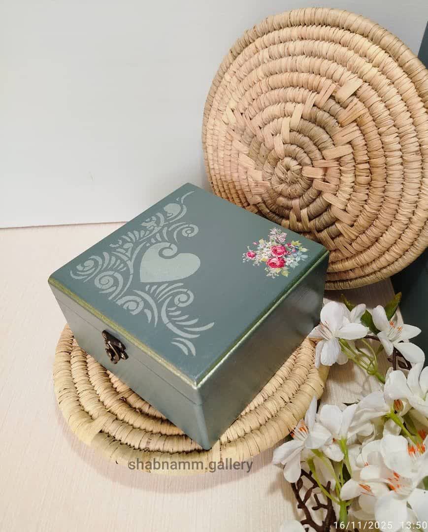 صندوق جواهرات چوبی دکوپاژ شده دست ساز در رنگ و طرح های متنوع
