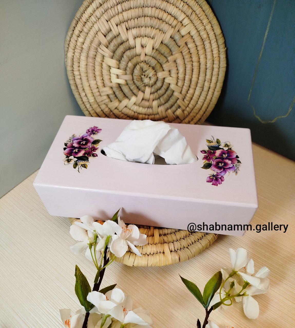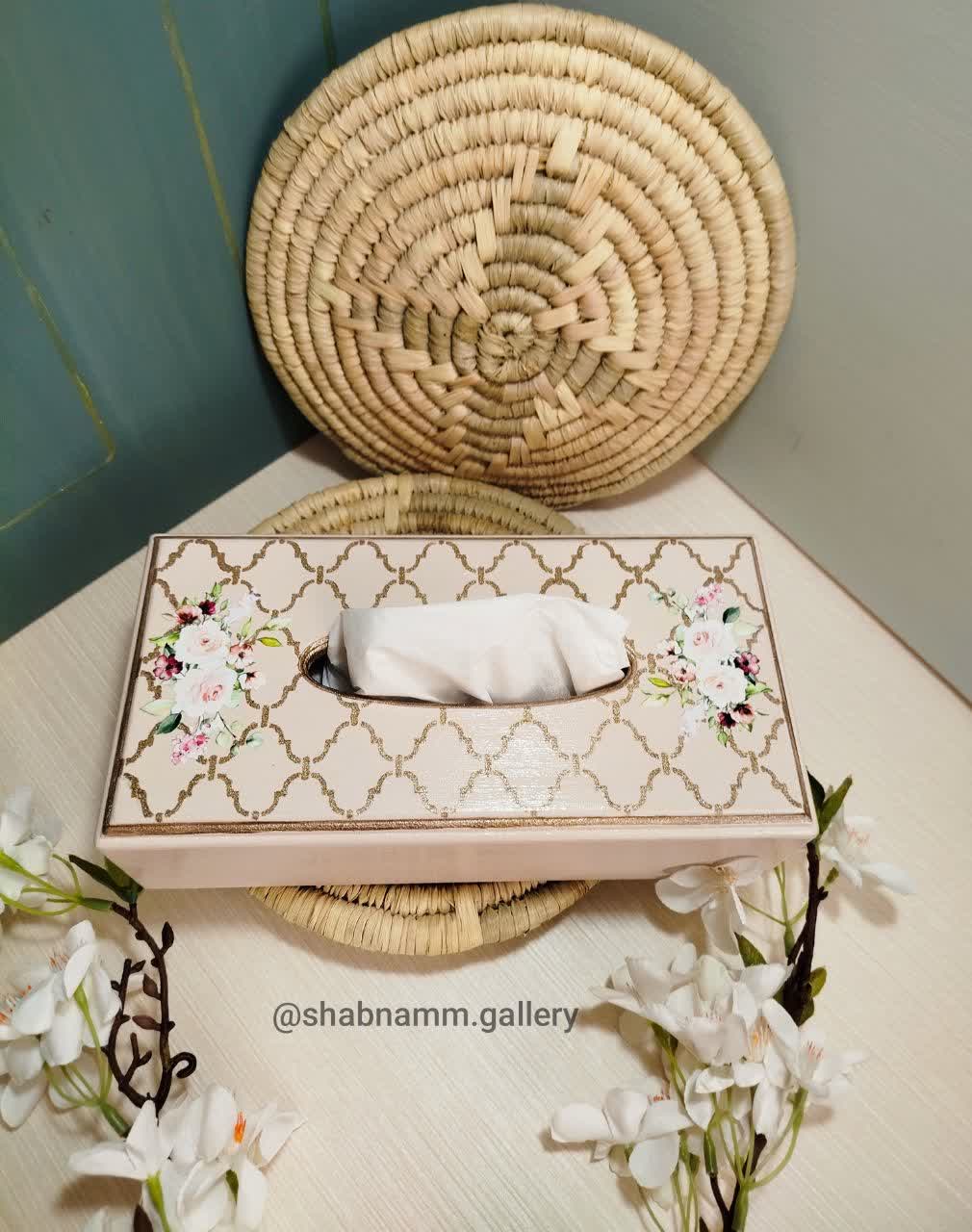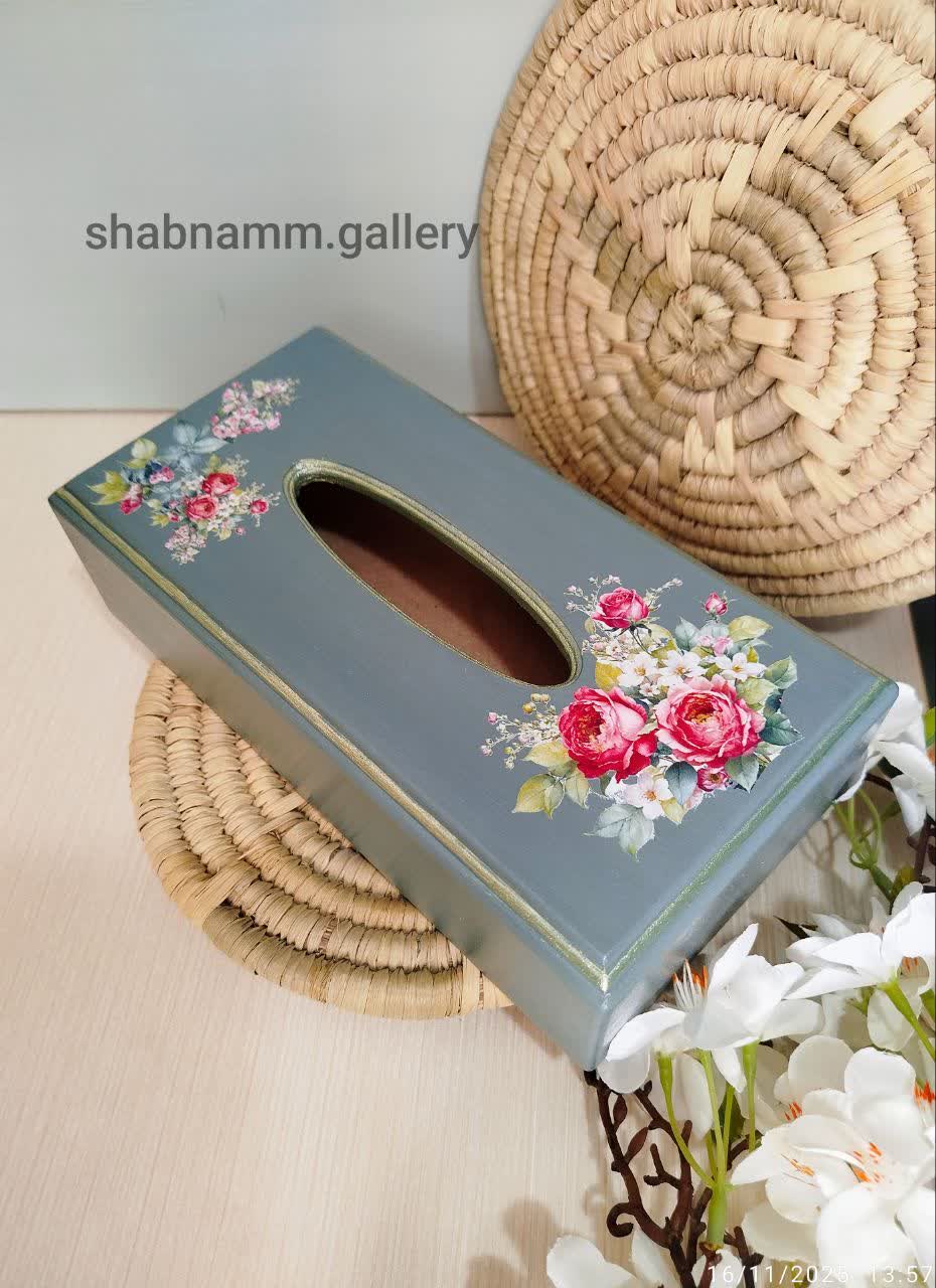 جعبه جا دستمالی چوبی دکوپاژ شده دست ساز در رنگ و طرح متنوع
