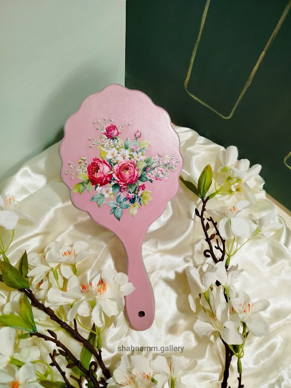 آینه دستی چوبی دکوپاژ شد دست ساز در رنگ و طرح های متنوع
