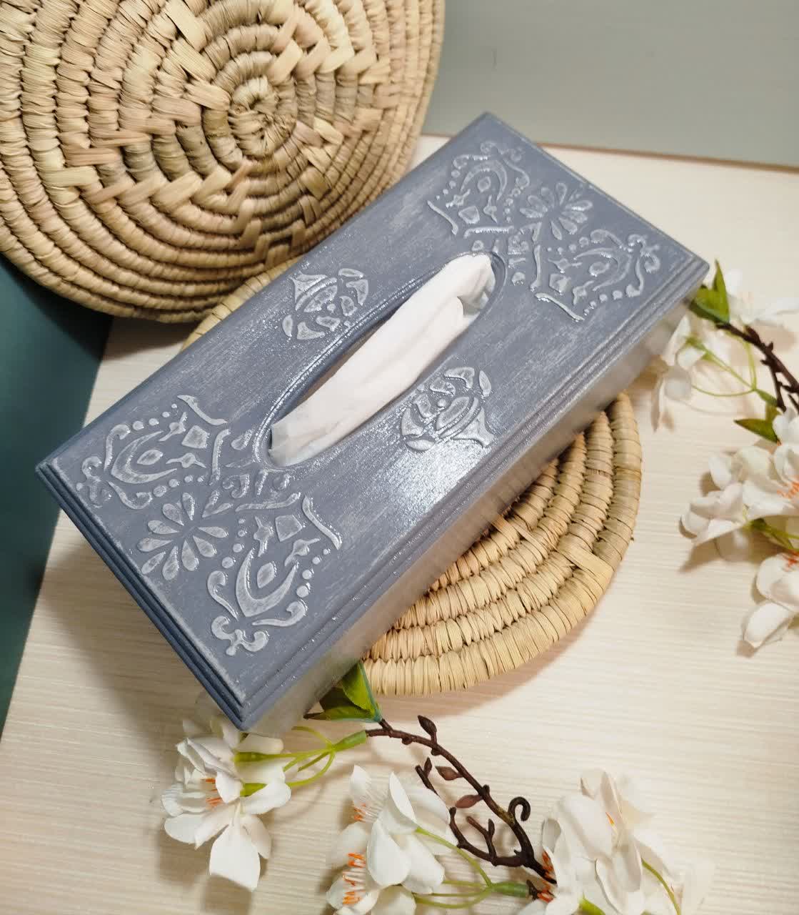 جا دستمال کاغذی چوبی پتینه دست ساز در رنگ و طرح های متنوع
