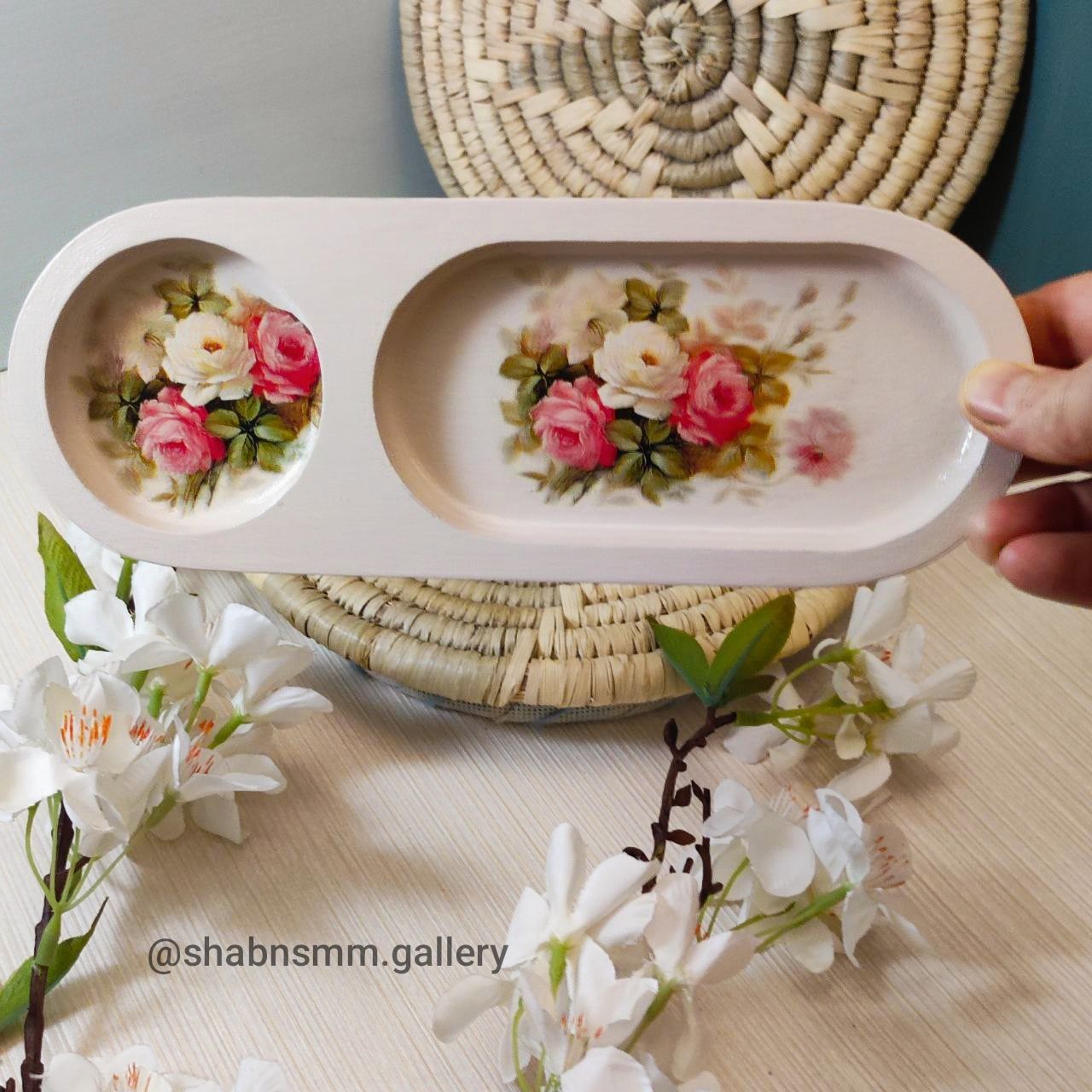 سینی چوبی رزین شده با طرح سنتی در رنگ وطرح دلخواه