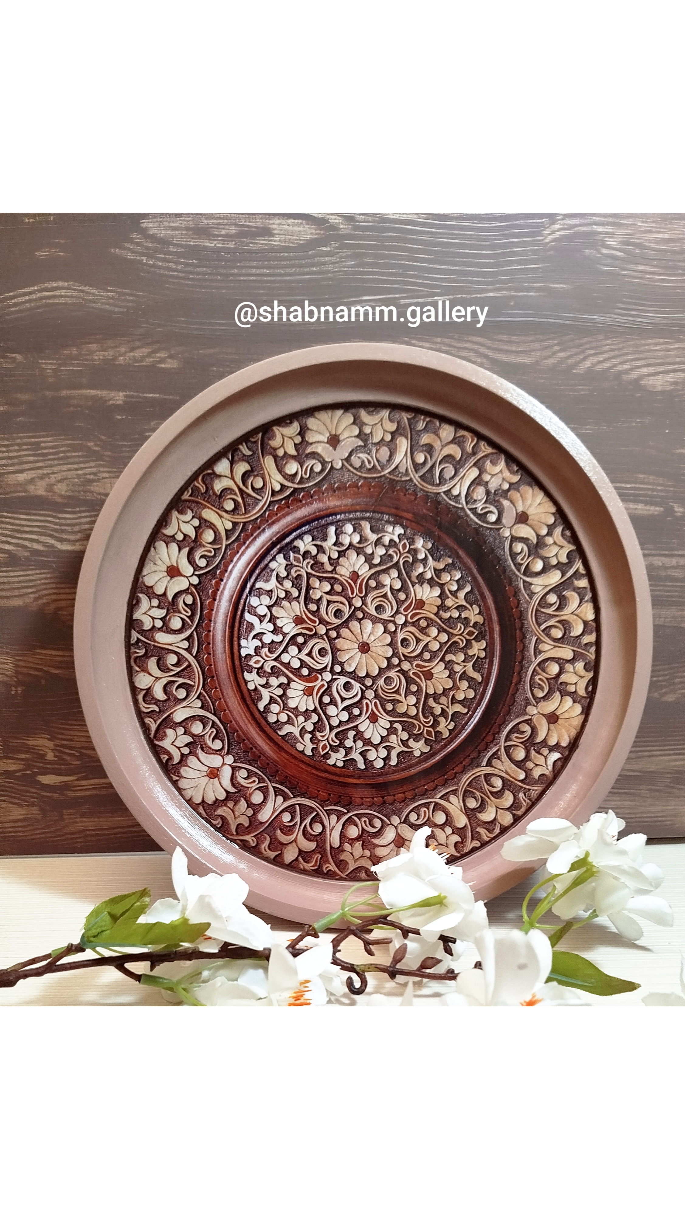 سینی چوبی رزین شده با طرح سنتی در رنگ و اندازه دلخواه