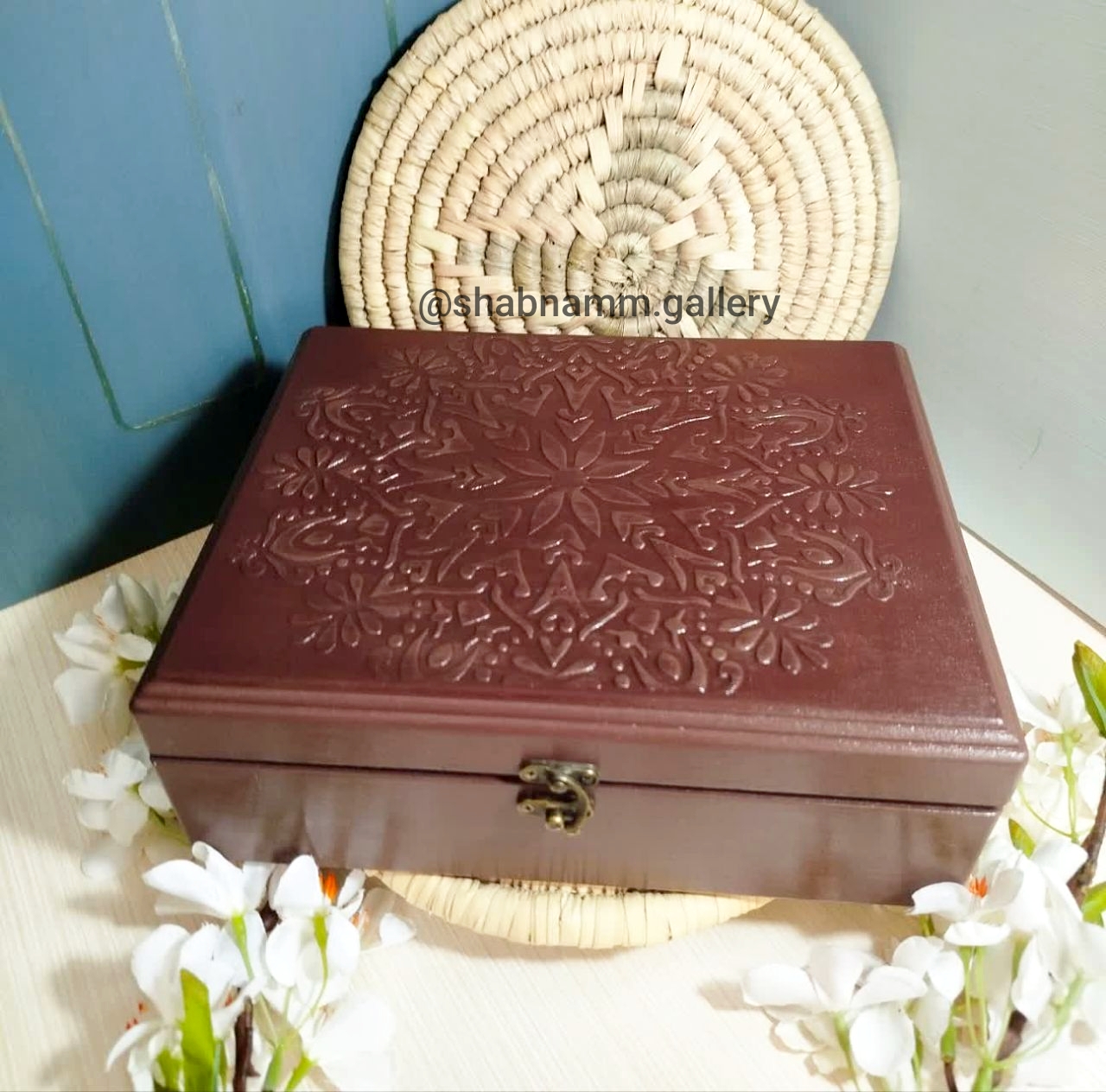 جعبه کارد و چنگال چوبی منبت کاری دست سازدر رنگ و طرح وابعاد متنوع